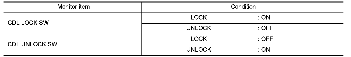 Check ("CDL LOCK SW ", "CDL UNLOCK SW") in Data Monitor mode with CONSULT-III.
