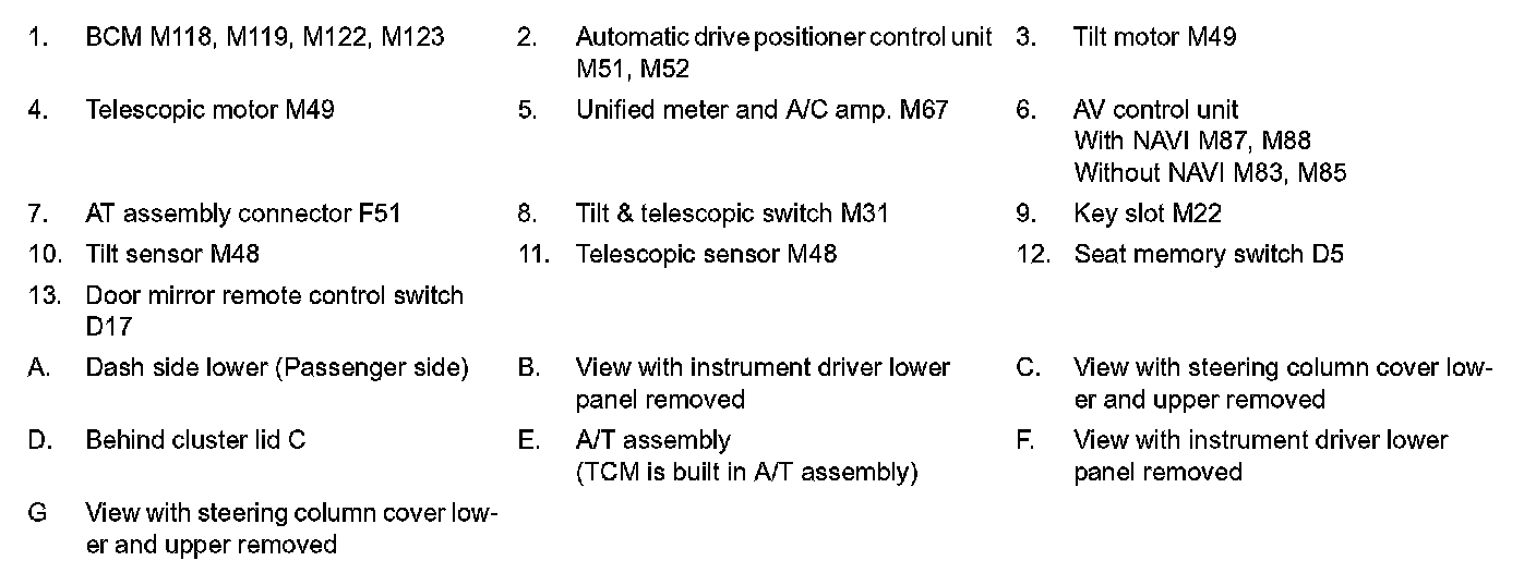 MANUAL FUNCTION : Component Parts Location