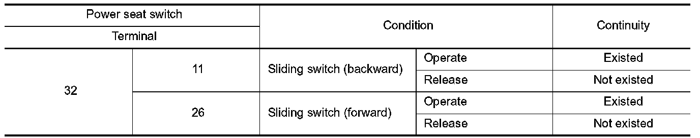 3. Check continuity between power seat switch terminals.
