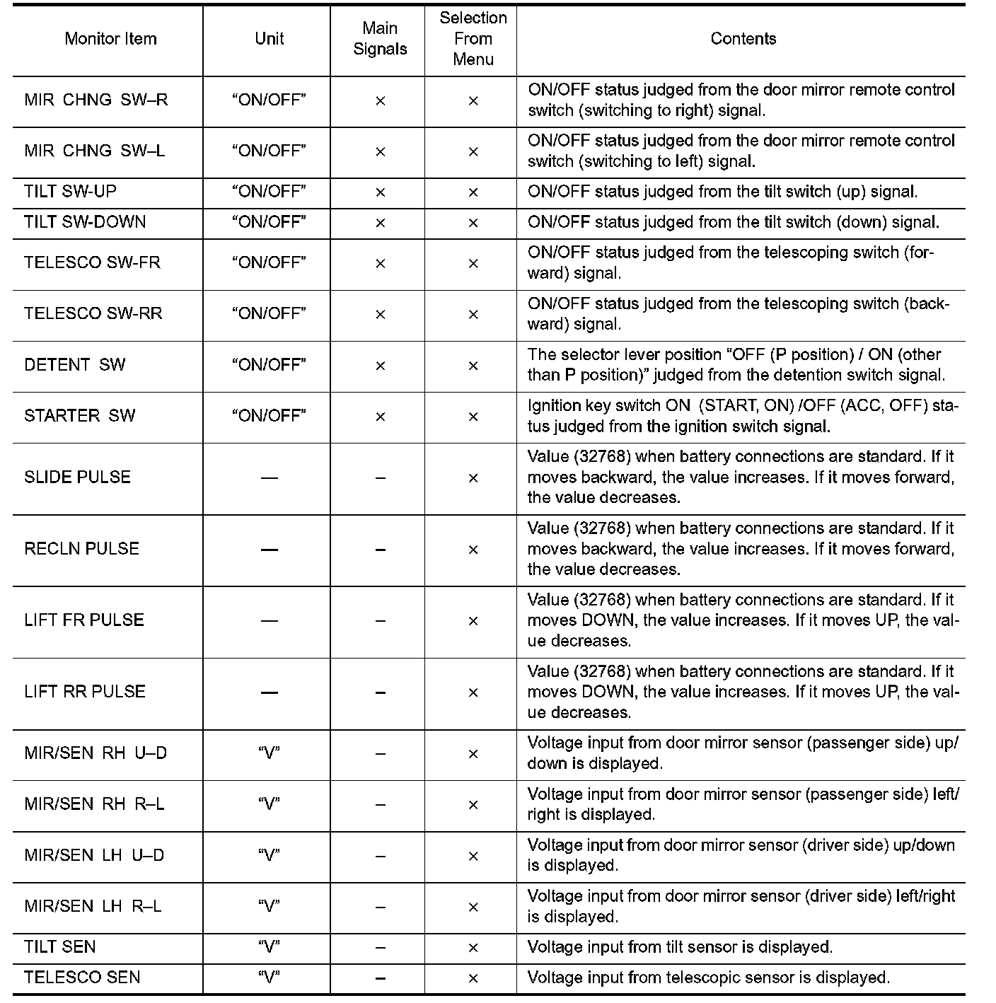 DIAGNOSIS SYSTEM (DRIVER SEAT CONTROL UNIT)