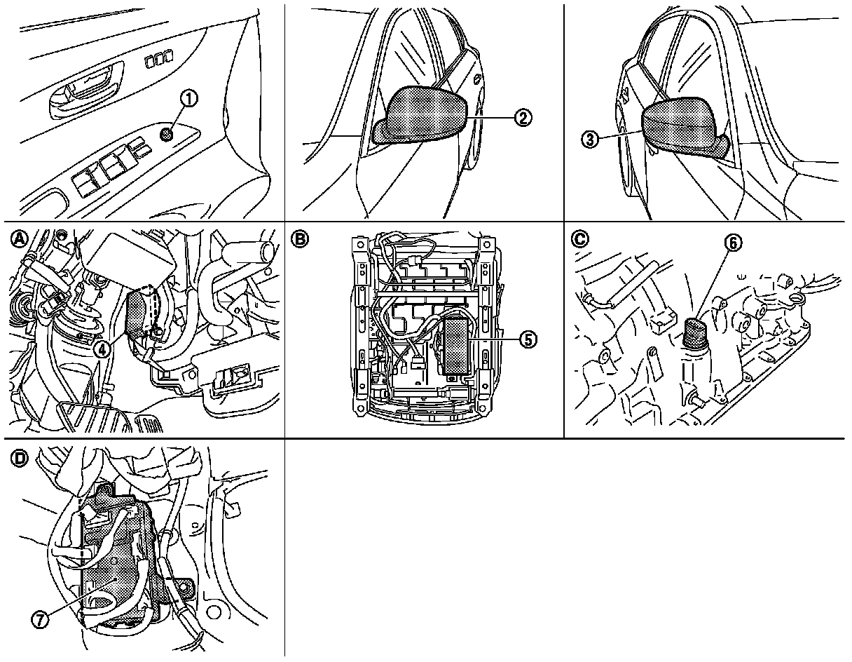 Power Mirror Switch: Locations