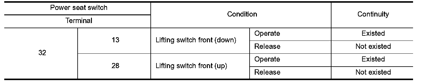 3. Check continuity between power seat switch terminals.