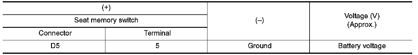 Check voltage between seat memory switch harness connector and ground.