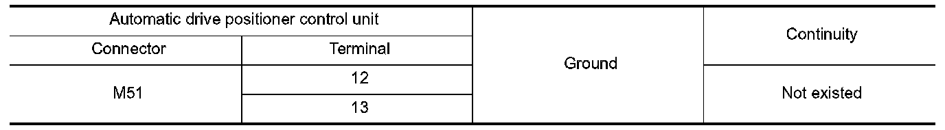 4. Check continuity between automatic drive positioner control unit harness connector and ground.