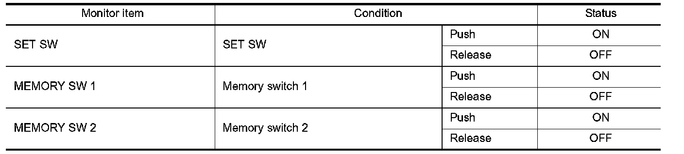3. Check seat memory switch signal under the following conditions.