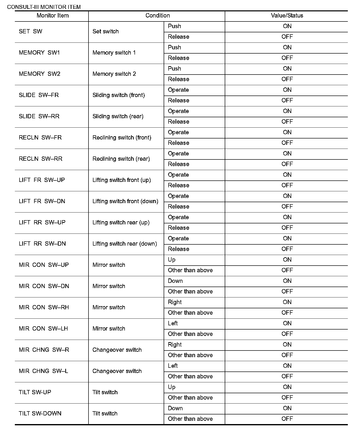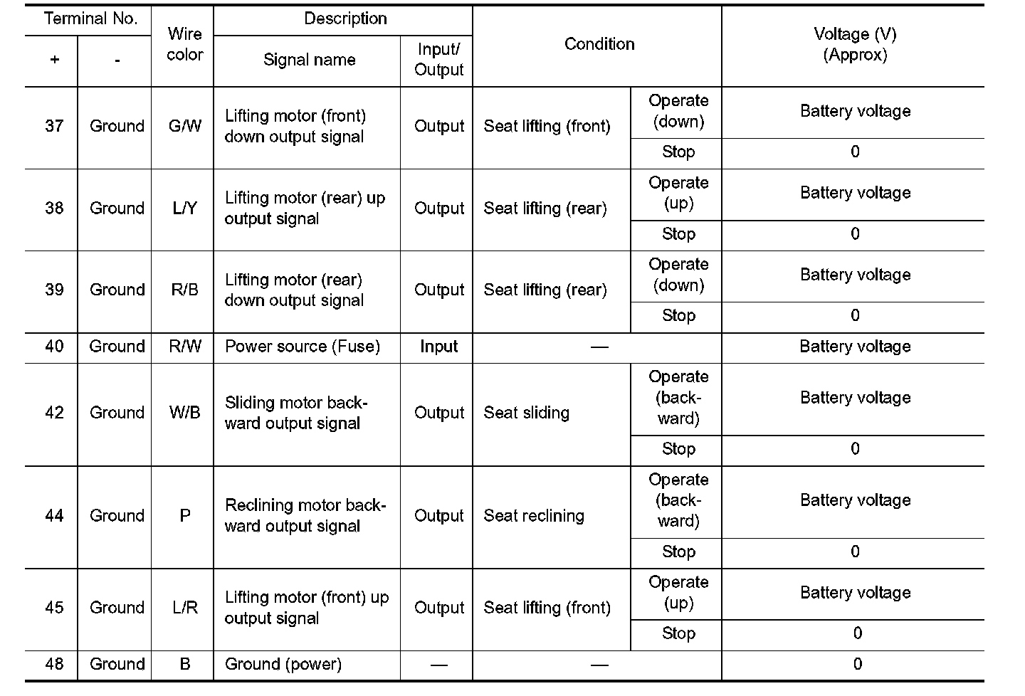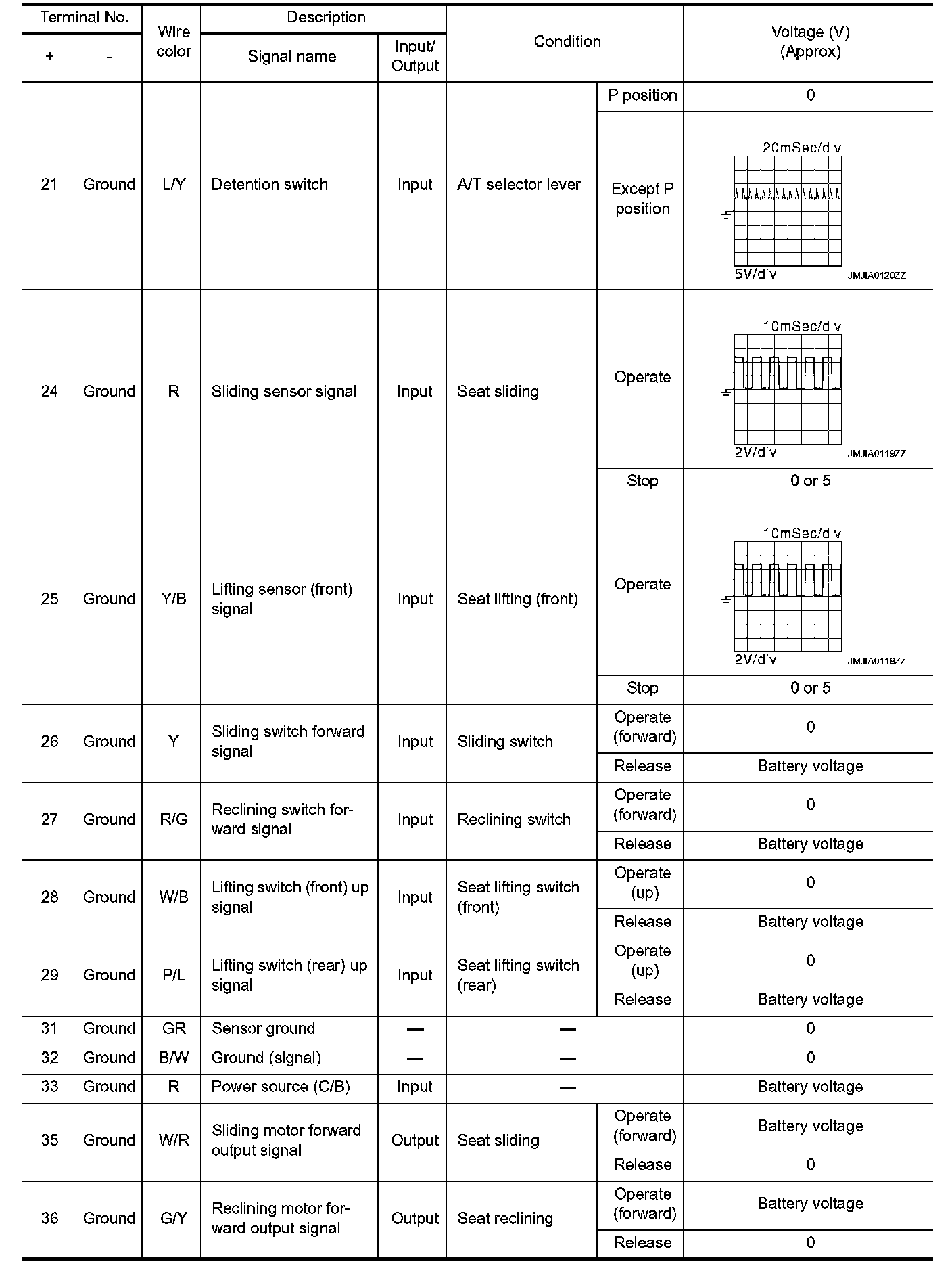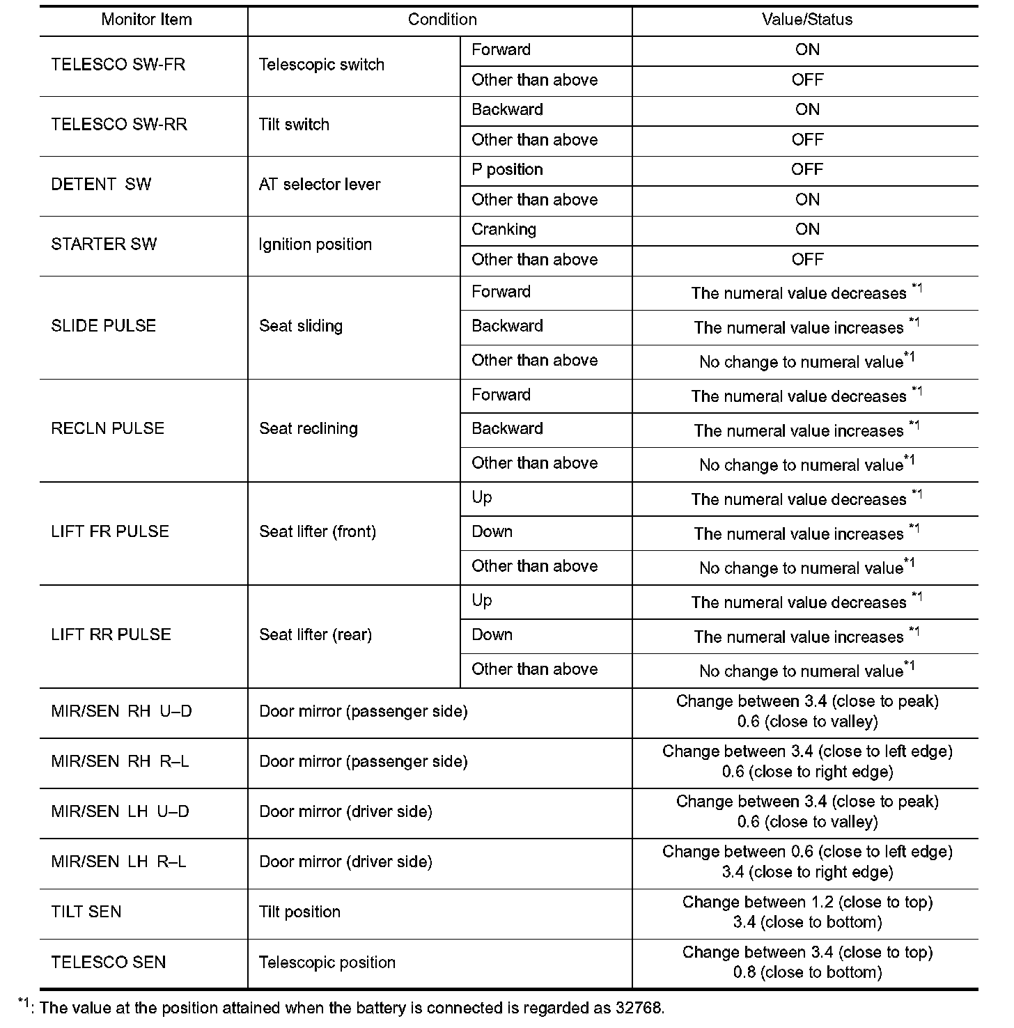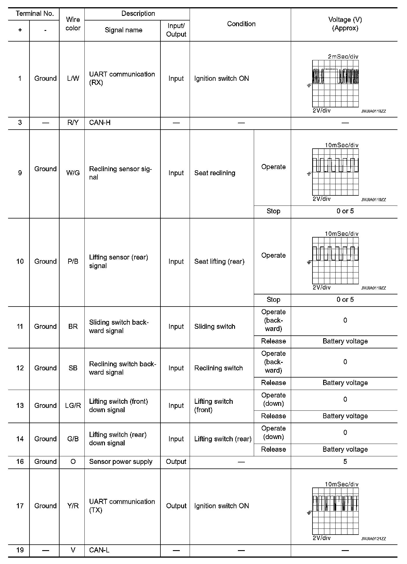 Pinout Values and Diagnostic Parameters