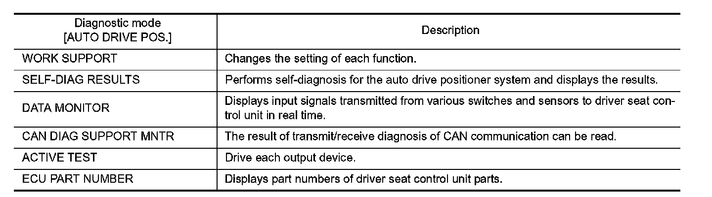 The auto drive positioner system can be checked and diagnosed for component operation with CONSULT-III.