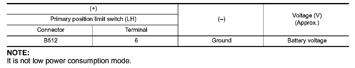 3. Check voltage between primary position limit switch (LH) connector and ground.