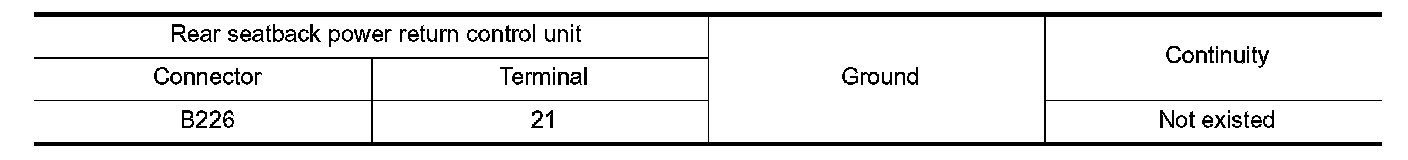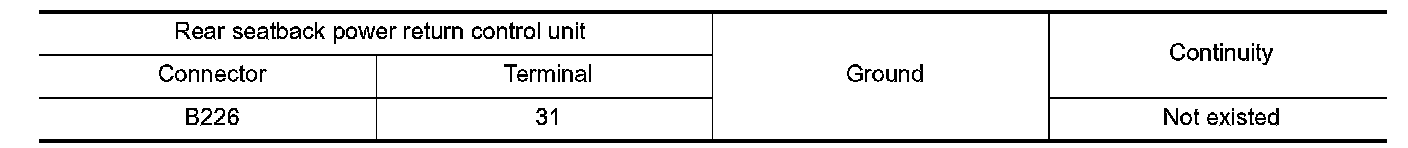2. Check continuity between rear seatback power return control unit harness connector and ground.