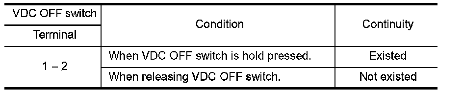 3. Check the continuity between VDC OFF switch connector terminals.