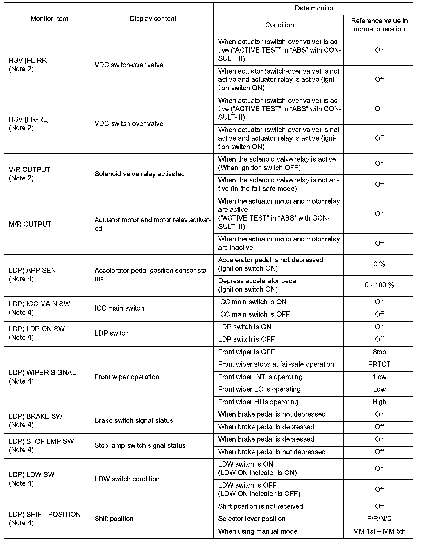 The display shows the control unit calculation data, so a normal value might be displayed even in the event the output circuit (harness) is open or short-circuited.