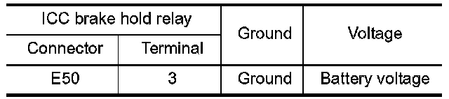 4. Check the voltage between ICC brake hold relay harness connector and ground.