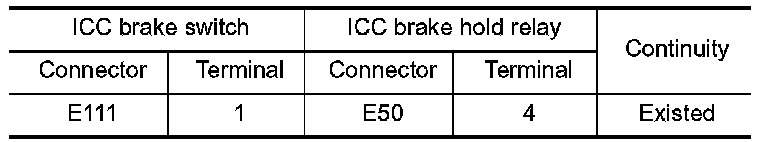 2. Check the continuity between ICC brake switch harness connector and ICC brake hold relay harness connector.
