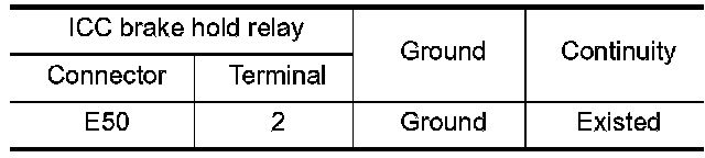 4. Check the continuity between ICC brake hold relay harness connector and ground.