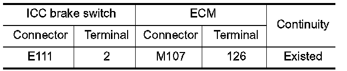 3. Check the continuity between ICC brake switch harness connector and ECM harness connector.