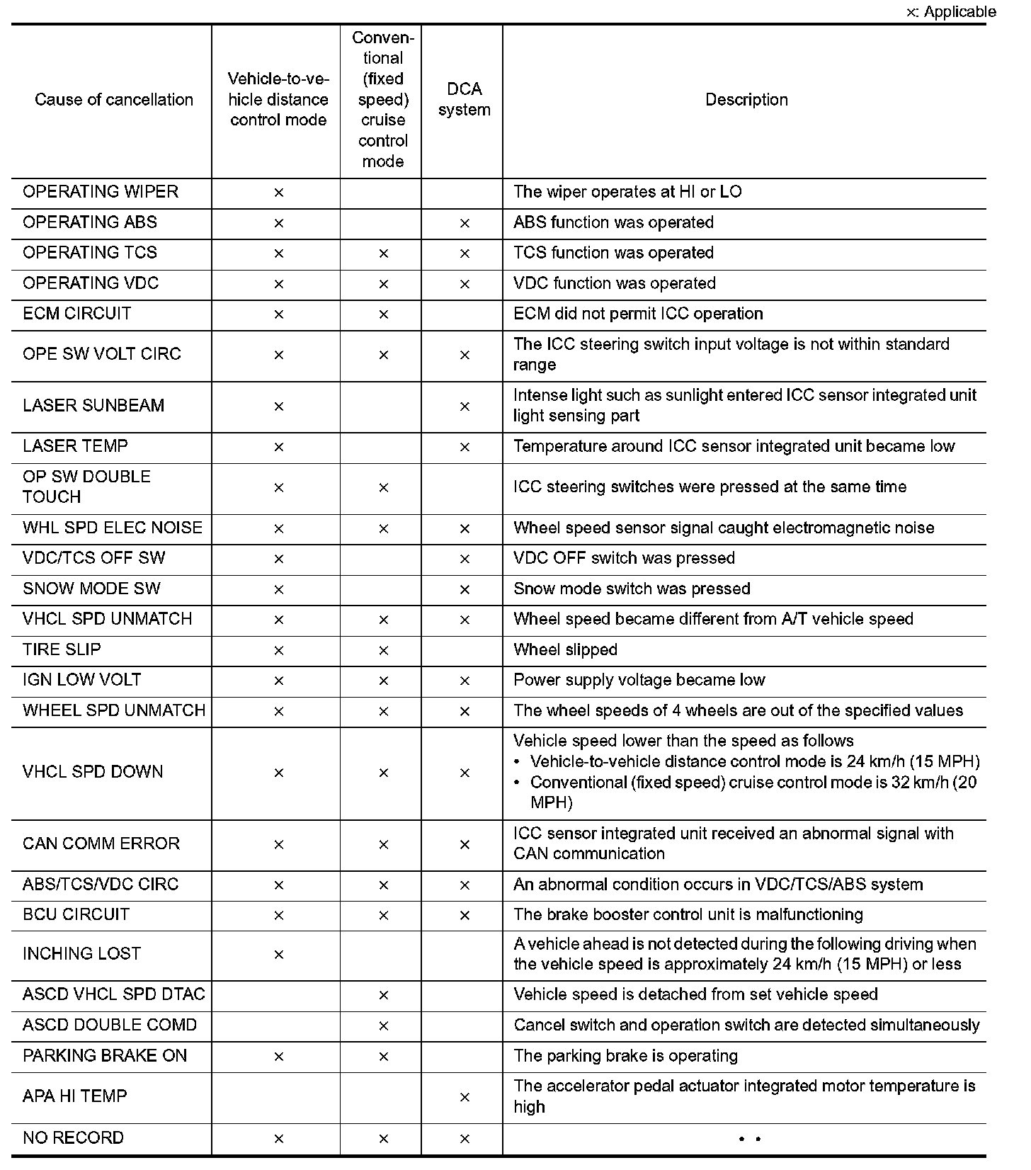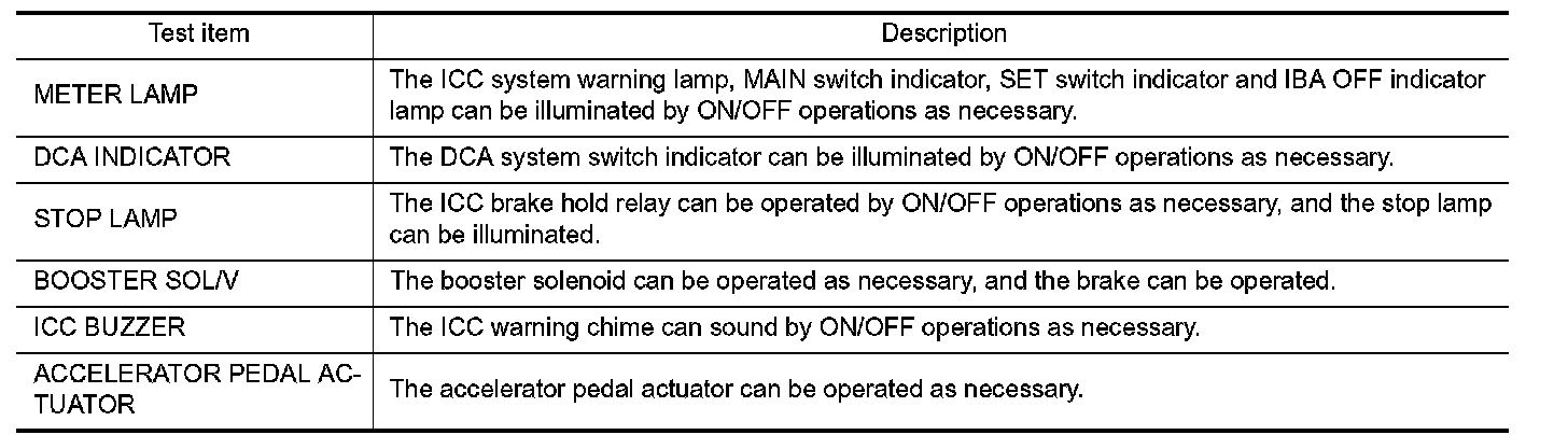 - The "Active Test" cannot be performed when the ICC system warning lamp is illuminated.