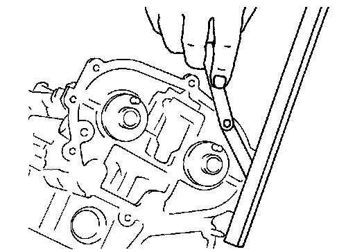 b. Apply liquid gasket with the tube presser (commercial service tool) to rear timing chain case back side as shown in the figure.