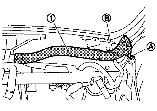4. Remove harness clip (B), and then remove side defroster nozzle
