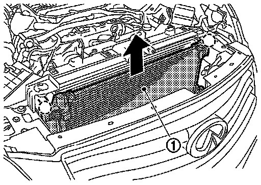 4. Pull condenser (1) upward of vehicle, and then remove condenser (as shown in the figure).