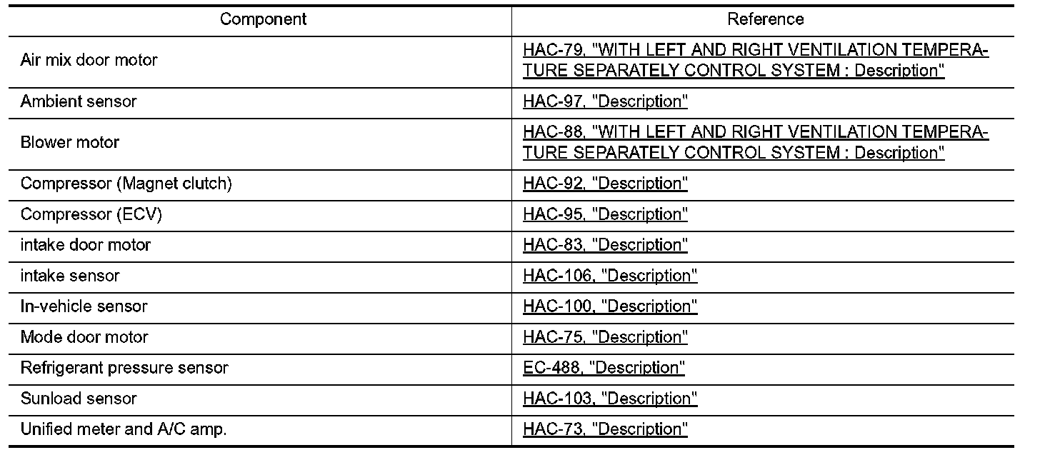 WITH LEFT AND RIGHT VENTILATION TEMPERATURE SEPARATELY CONTROL SYSTEM : Component Description