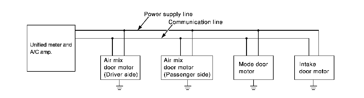 A small network is constructed between the unified meter and A/C amp., mode door motor, air mix door motors and intake door motor. The unified meter and A/C amp. and motors are connected by data transmission lines and motor power supply lines. The LAN network is built through the ground circuits of each door motor.
