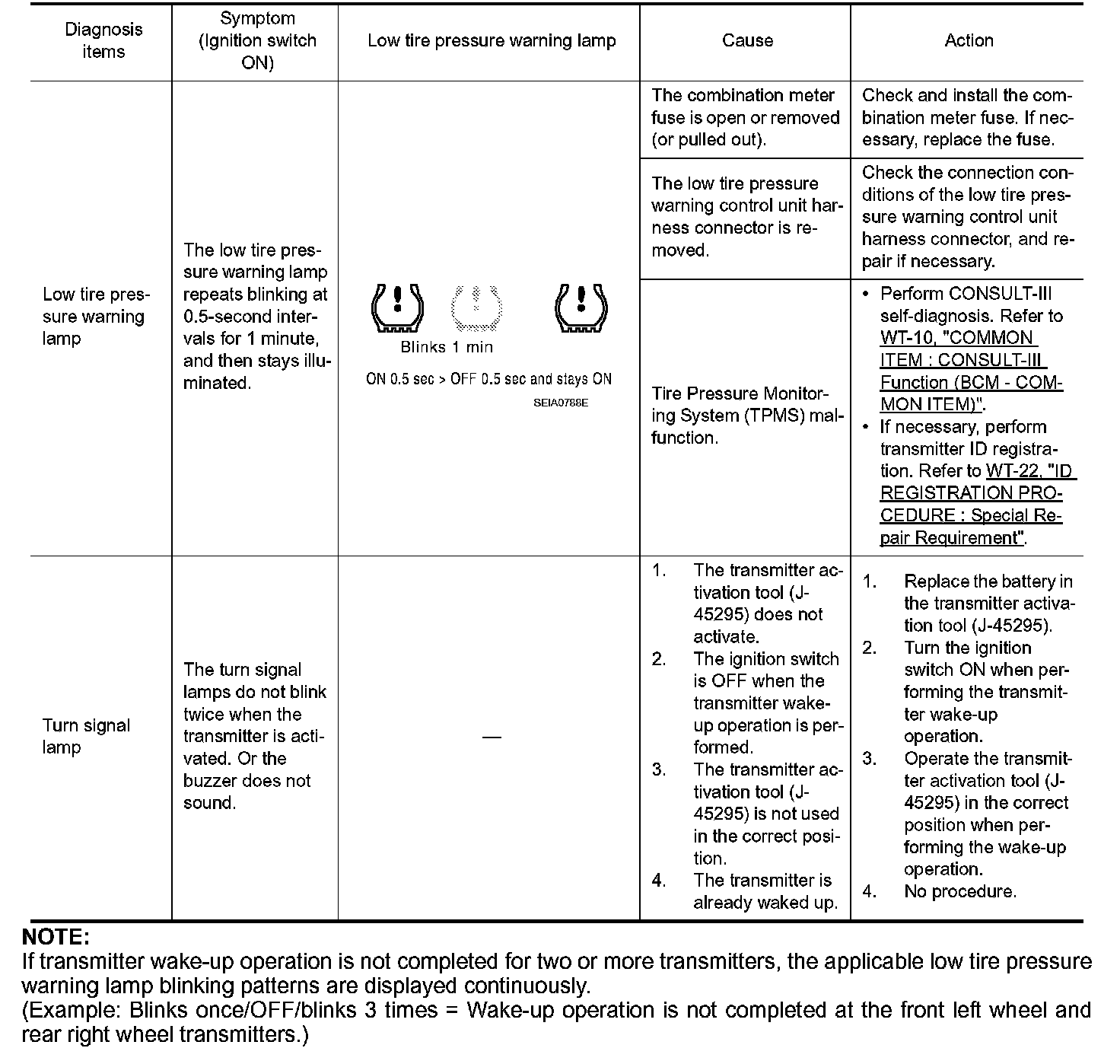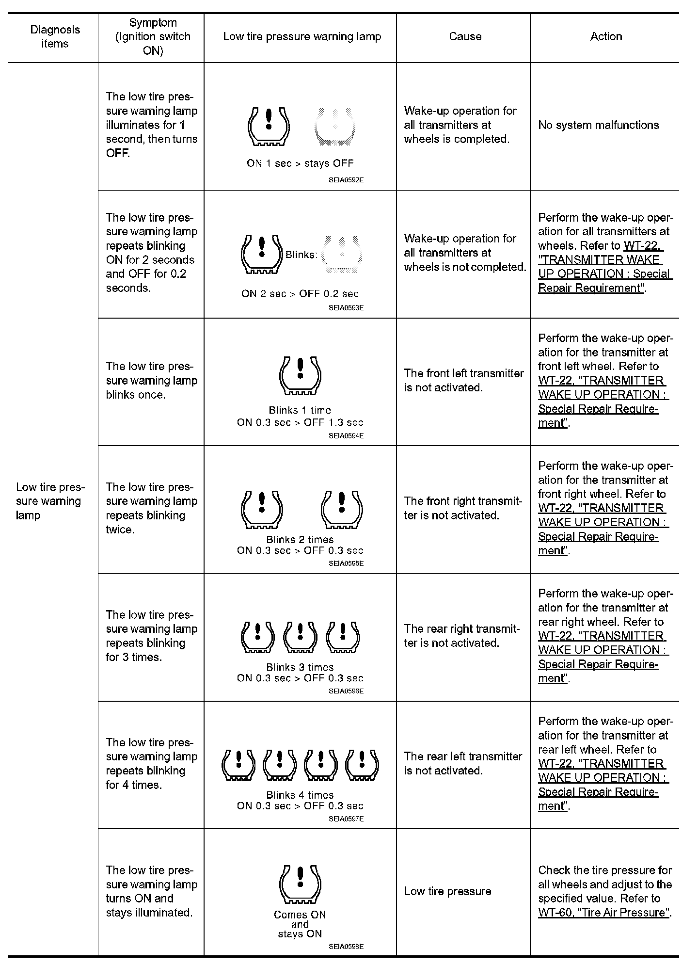 LOW TIRE PRESSURE WARNING LAMP SYMPTOM CHART