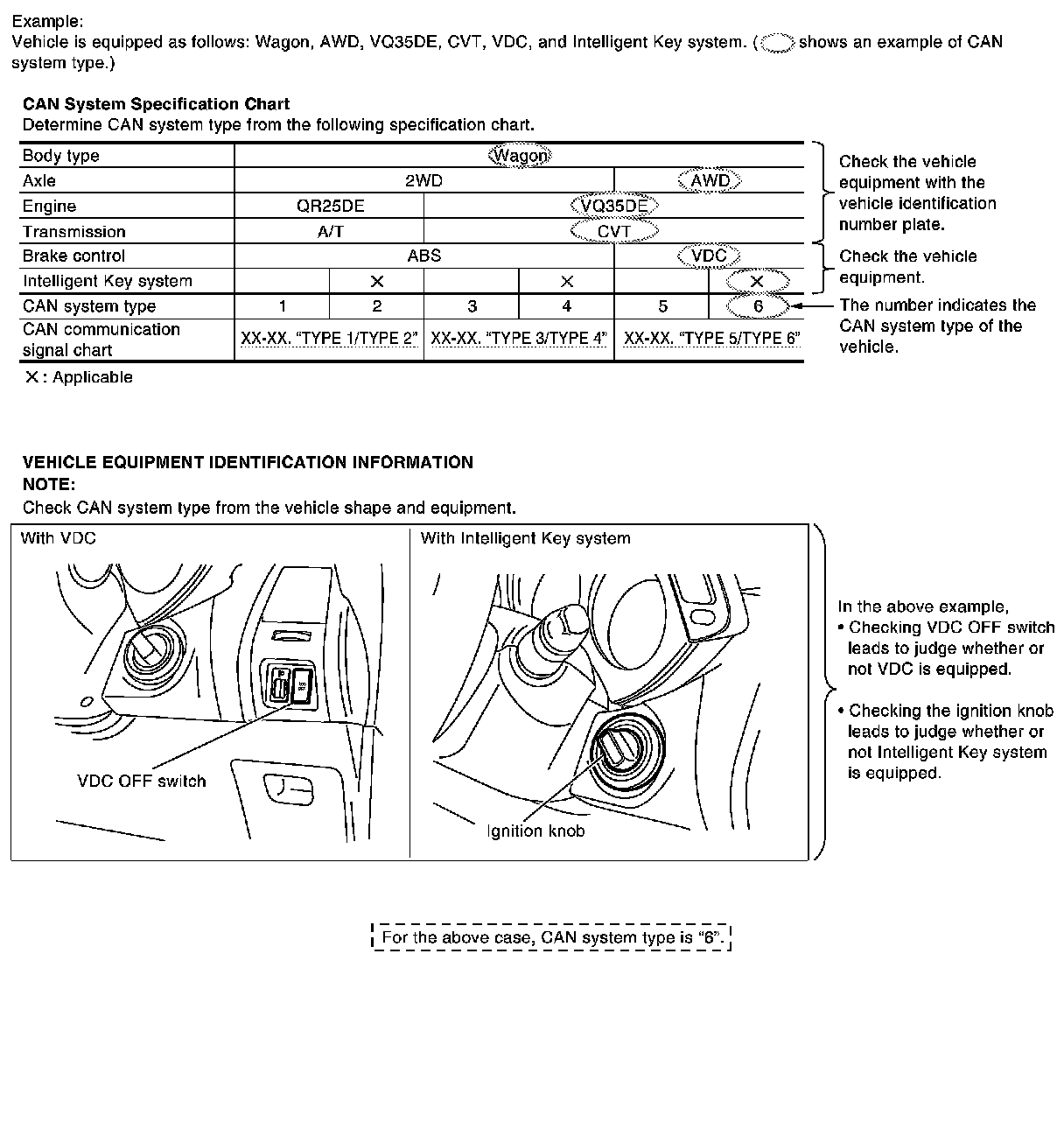 CAN system type is easily checked with the vehicle equipment identification information shown in the chart.