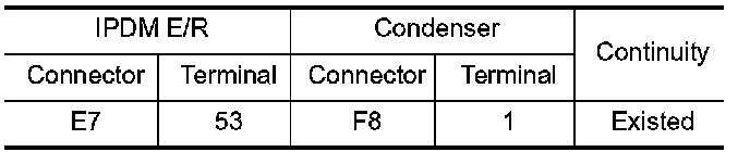 3. Check the continuity between IPDM E/R harness connector and condenser harness connector.
