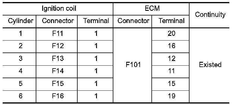2. Check the continuity between ignition coil harness connector and ECM harness connector.