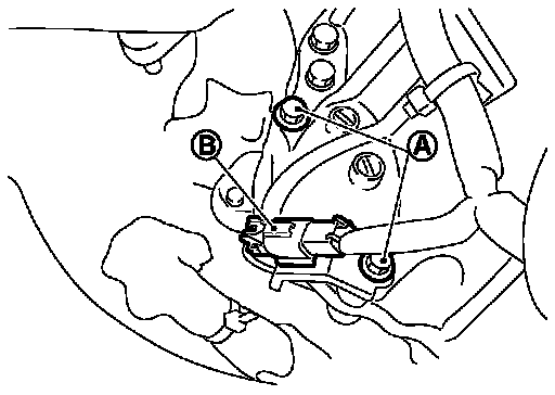 7. Remove starter motor mounting bolts (A), using power tools.