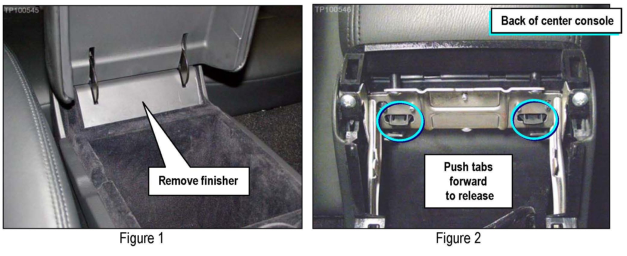 2. Open the center console lid and remove the finisher shown in Figure 1.