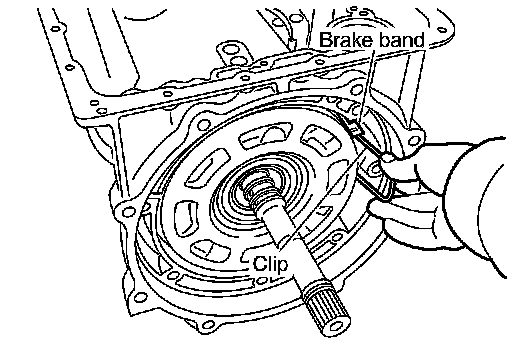 48. Adjust brake band tilting using a clip so that brake band contacts front sun gear drum evenly.