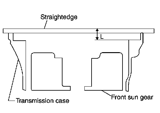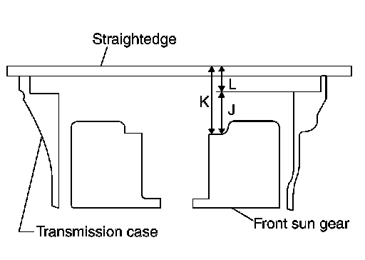 "J" : Distance between oil pump fitting surface of transmission case and needle bearing mating surface of front sun gear.