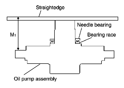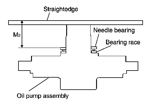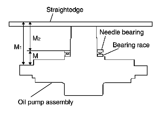 "M" : Distance between transmission case fitting surface of oil pump and needle bearing on oil pump.