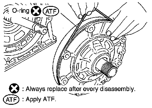 Apply ATF to front sun gear bearing and 3rd one-way clutch end bearing.