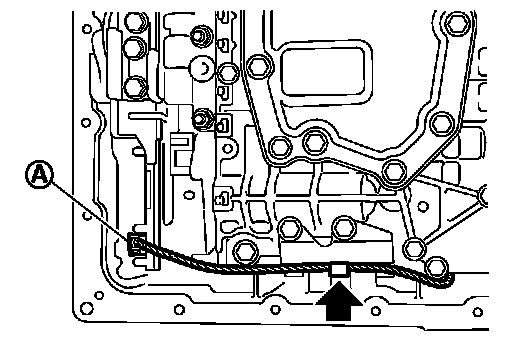 60. Install A/T assembly connector (A) to control valve with TCM.