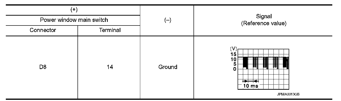 The signal mentioned below is transmitted from power window main switch to front power window switch (passenger side).