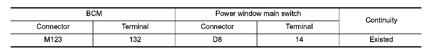 The signal mentioned below is transmitted from BCM to power window main switch, front power window switch (passenger side).