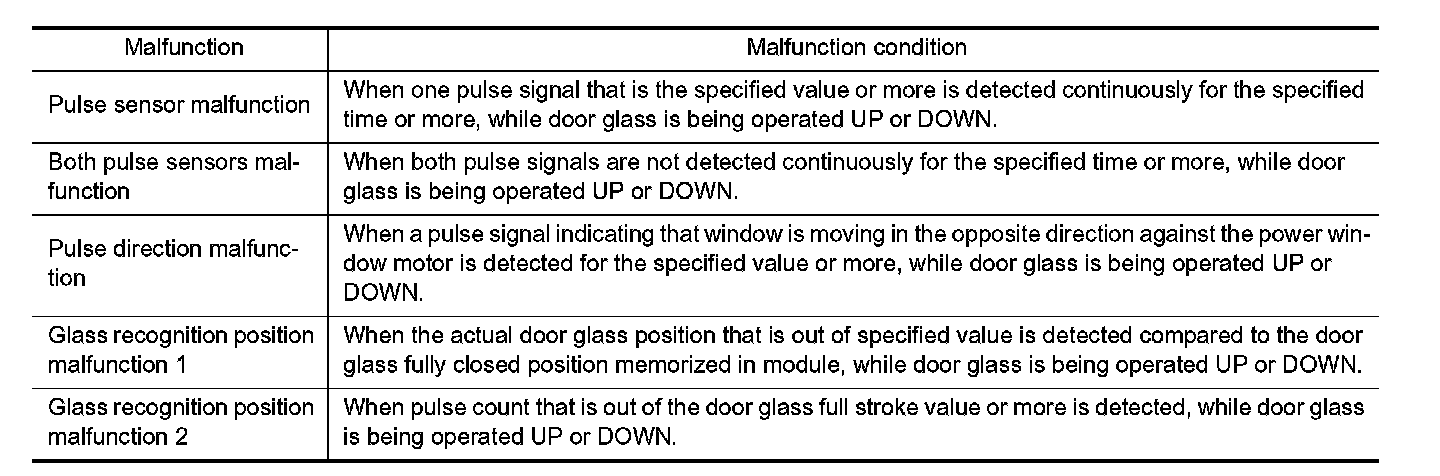 When fail-safe control is activated, perform initialization procedure to recover. If a malfunction is detected in power window switch or more, fail-safe control is activated again.