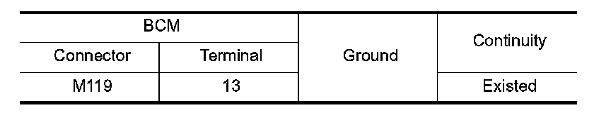 Check continuity between BCM harness connector and ground.