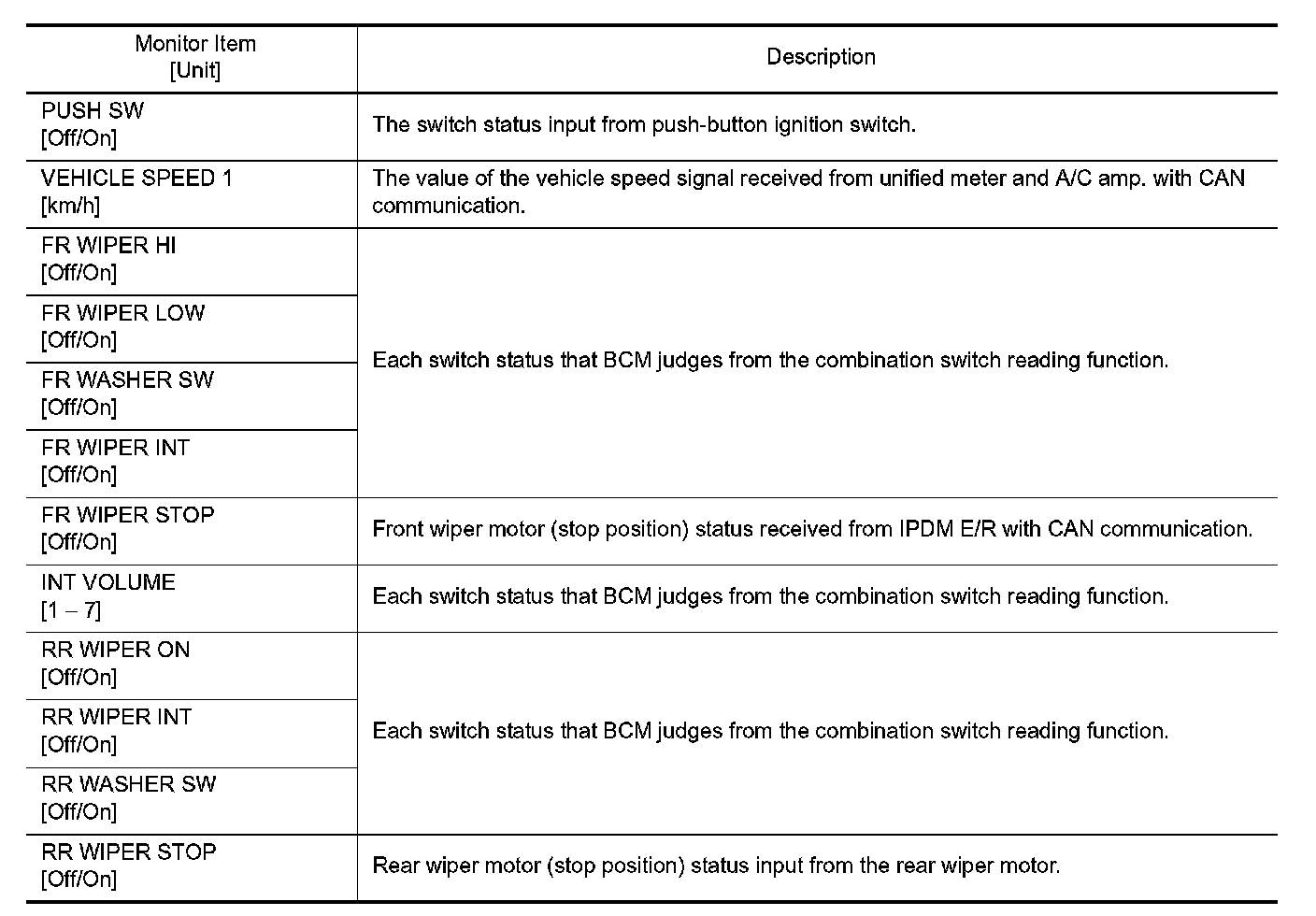 WIPER : CONSULT-III Function (BCM - WIPER)