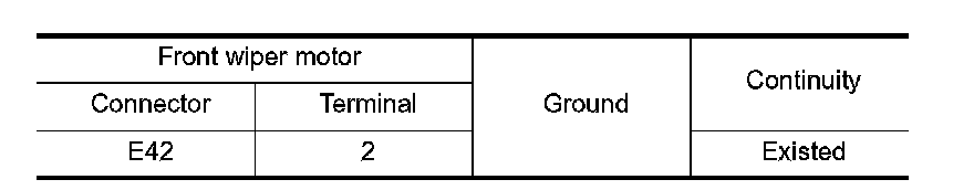 2. Check continuity between front wiper motor harness connector and ground.