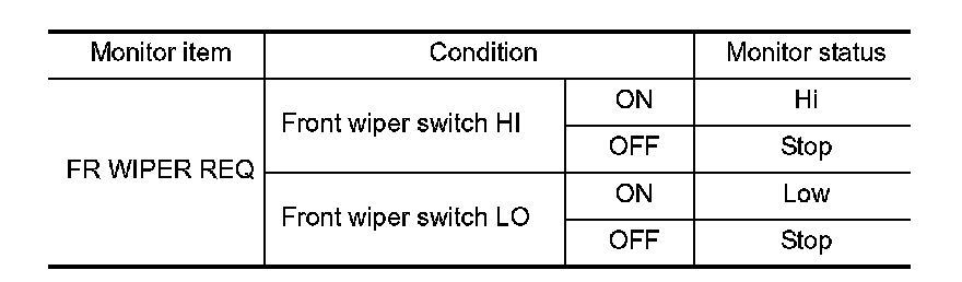 3. With operating the front wiper switch, check the monitor status.