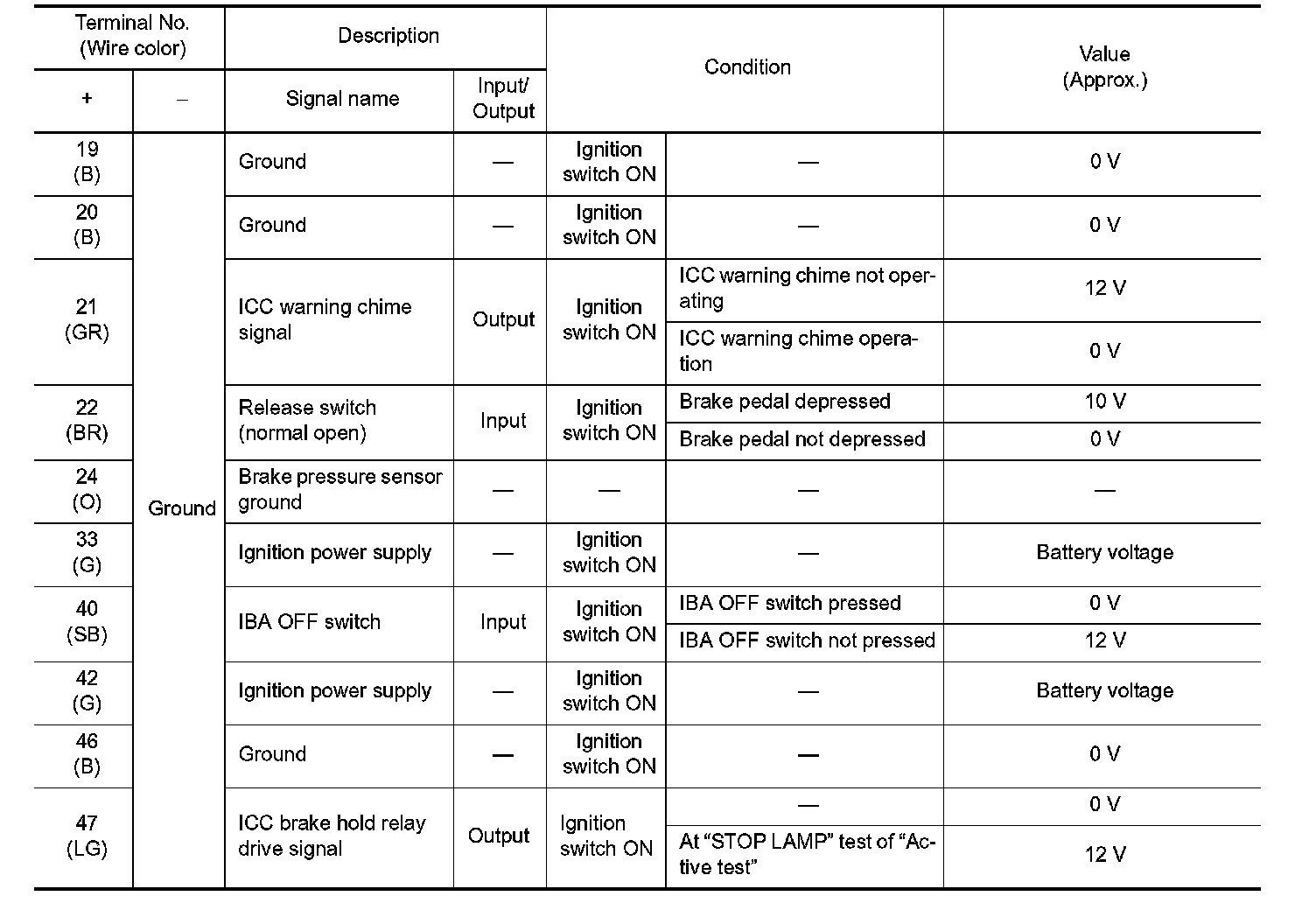 Pinout Values and Diagnostic Parameters