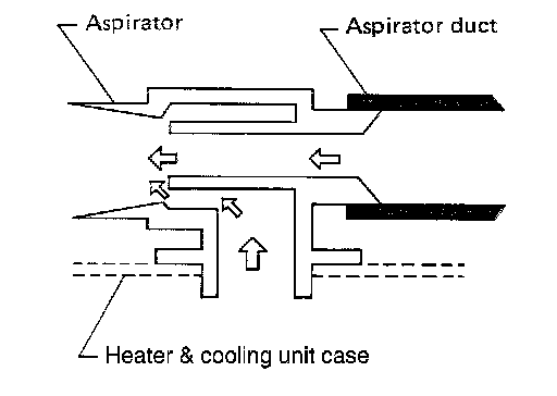 It converts variations in compartment air temperature drawn from the aspirator into a resistance value. It is then input into the unified meter and A/C etc. Aspirator