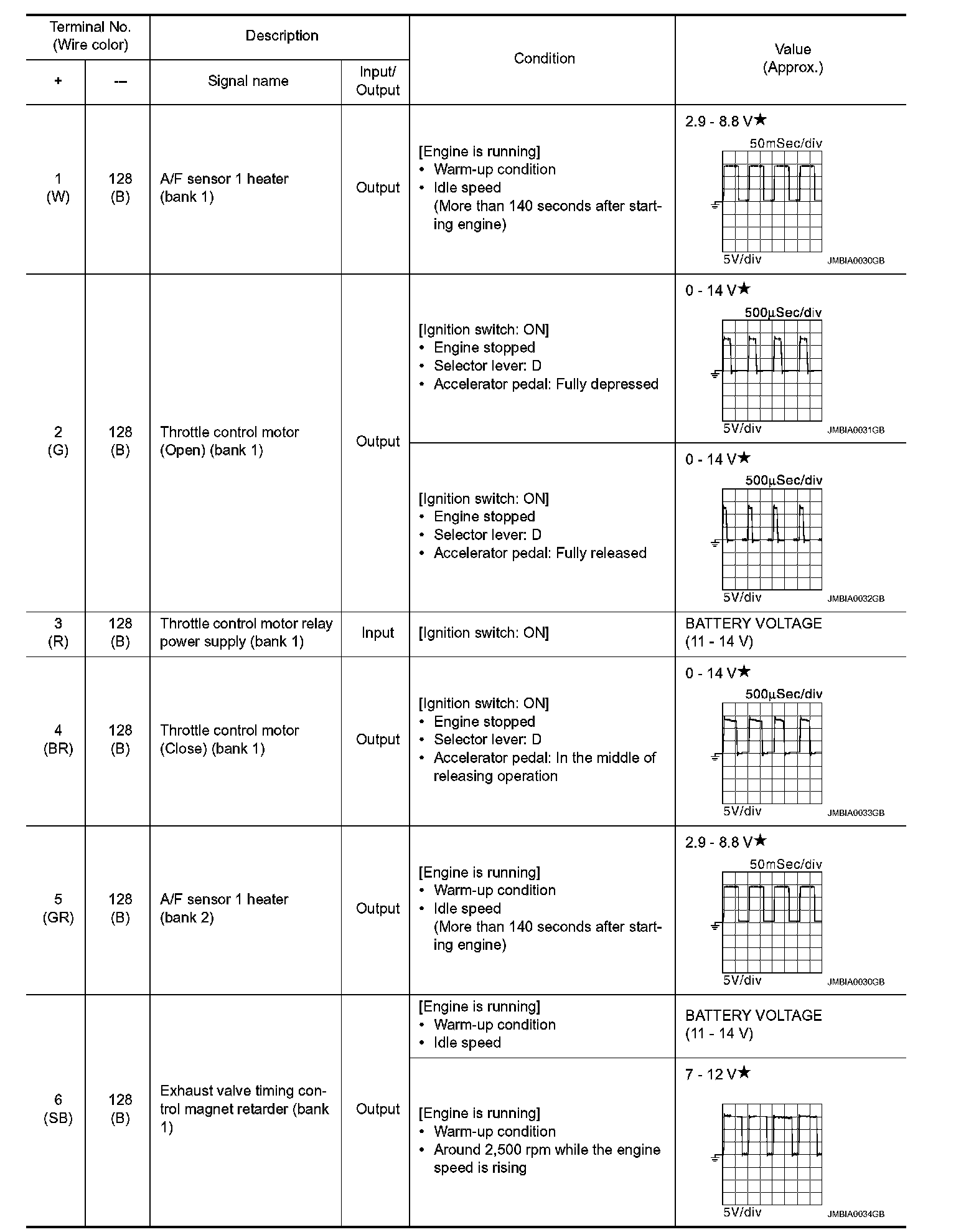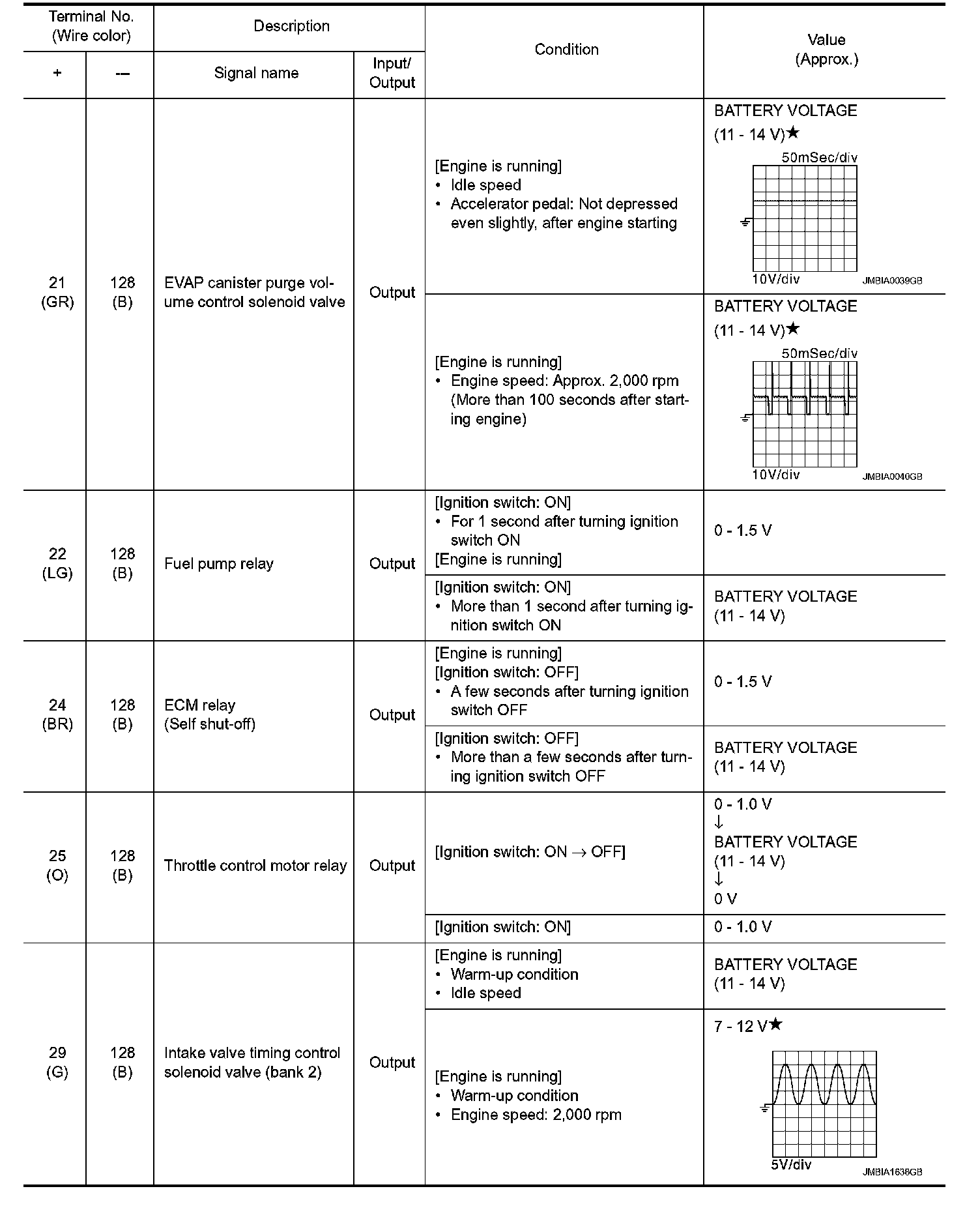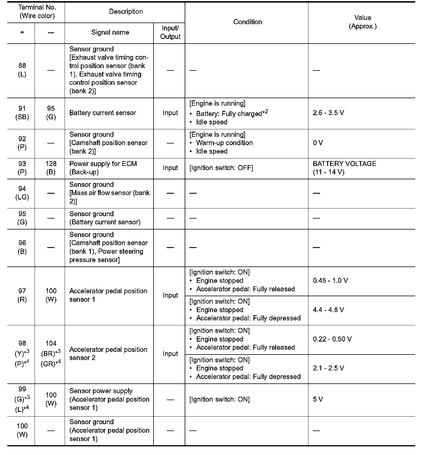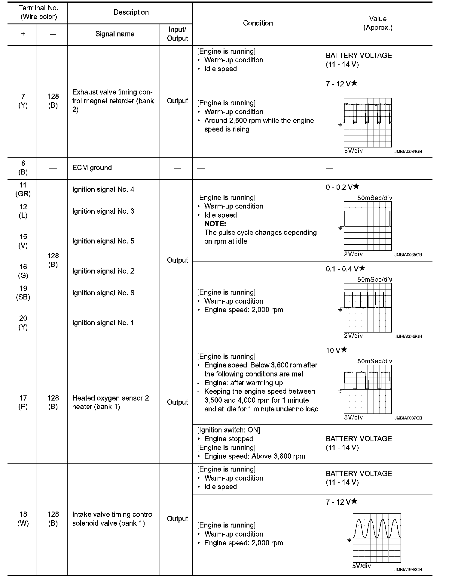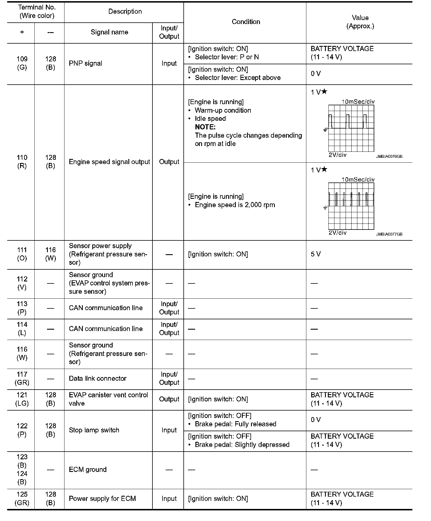 - Specification data are output/input values which are detected or supplied by the ECM at the connector.