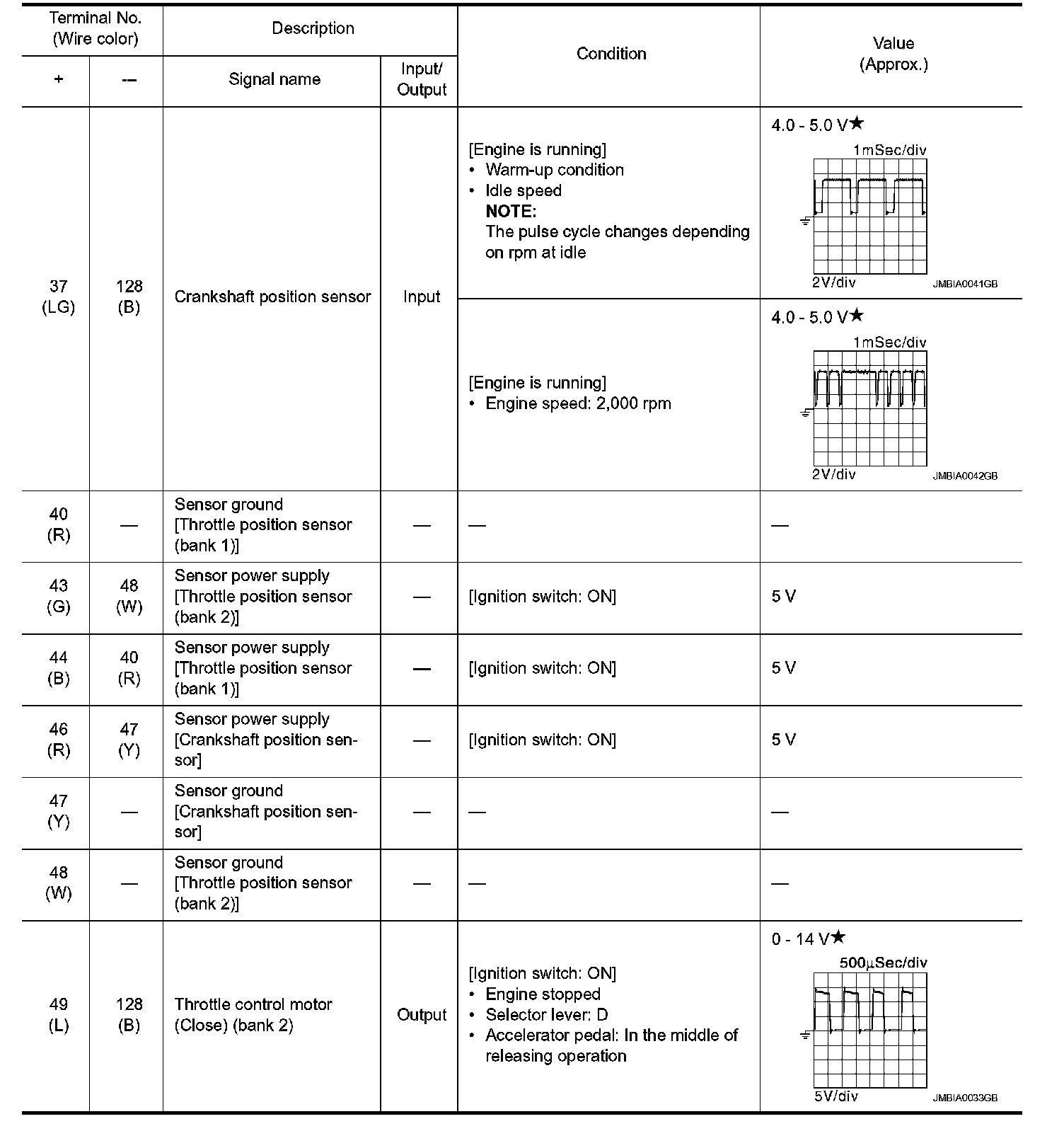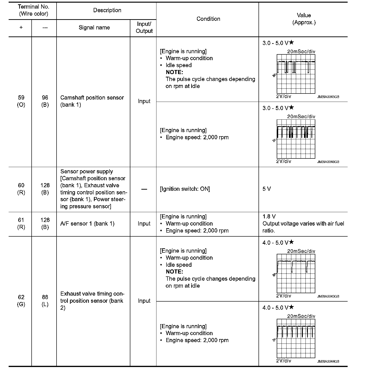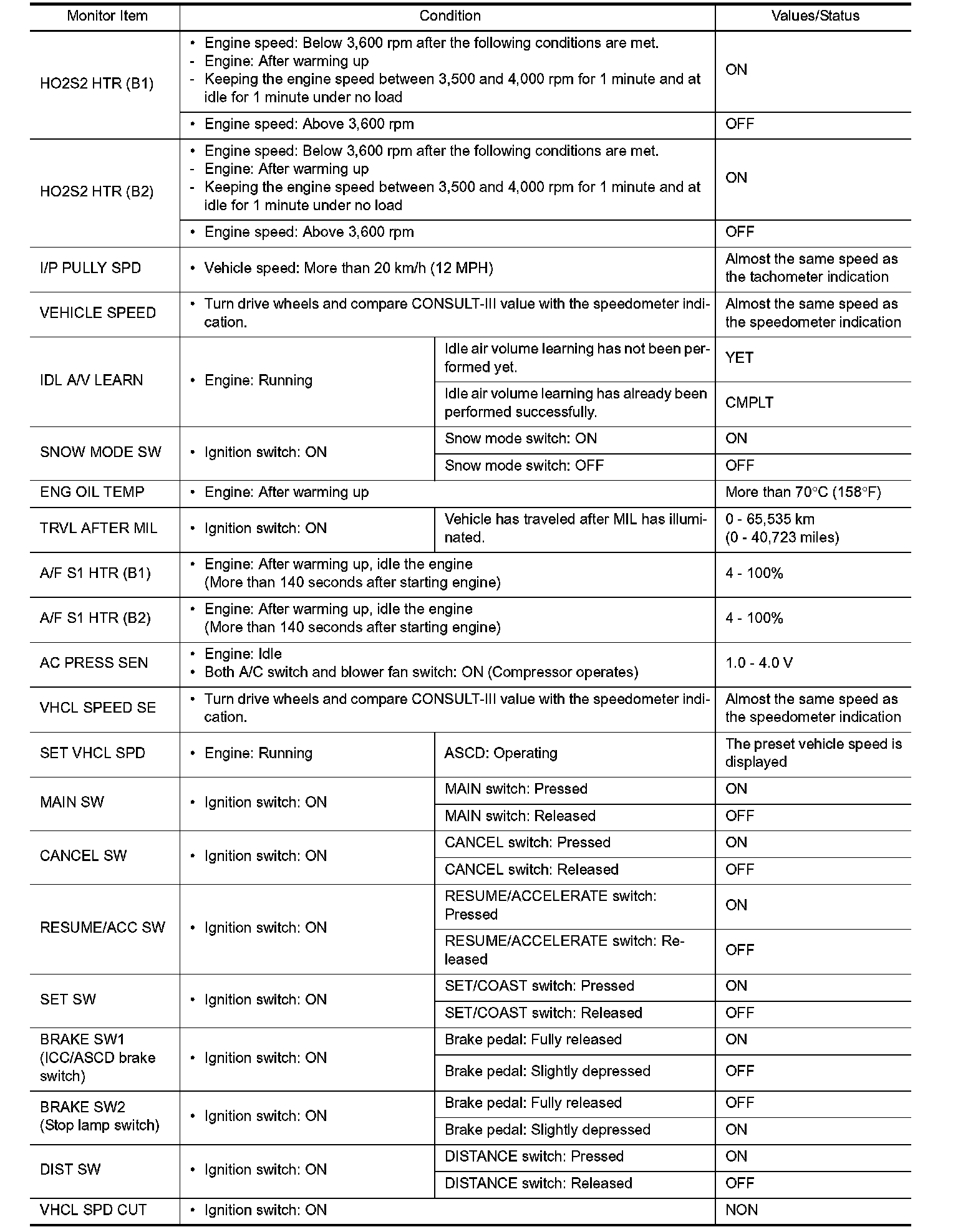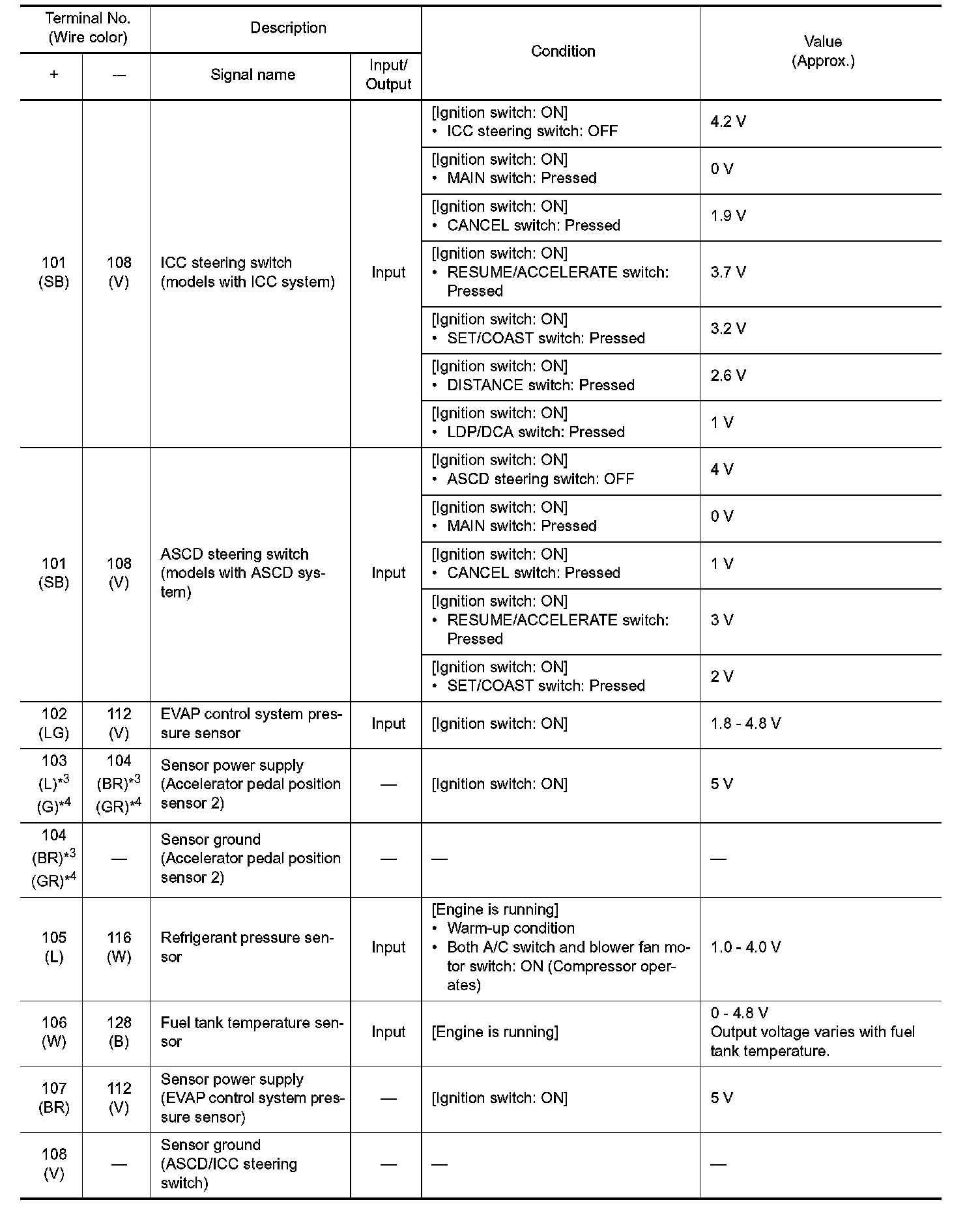 - Specification data are output/input values which are detected or supplied by the ECM at the connector.