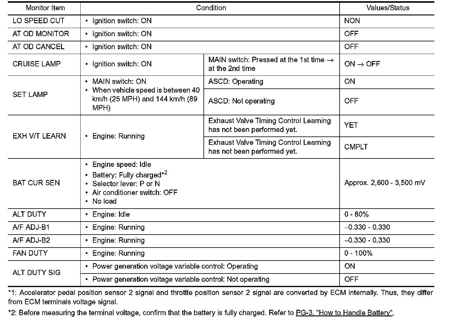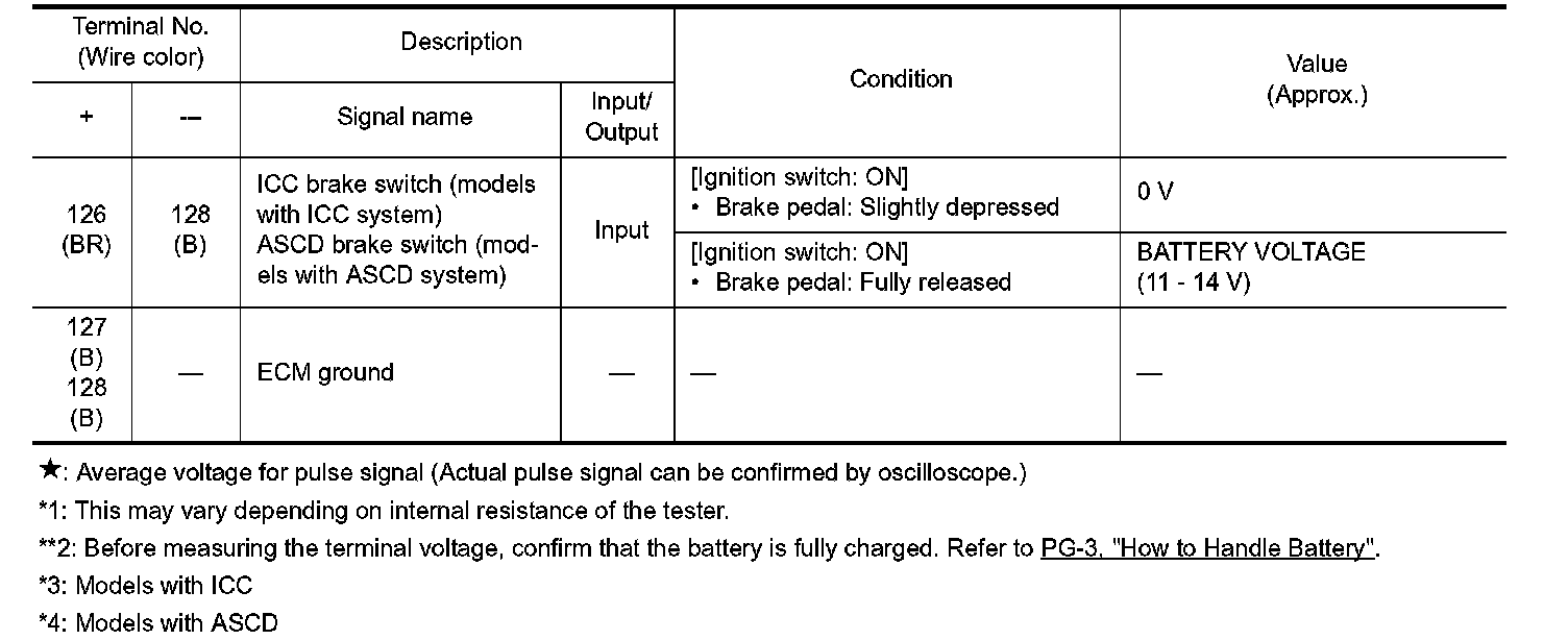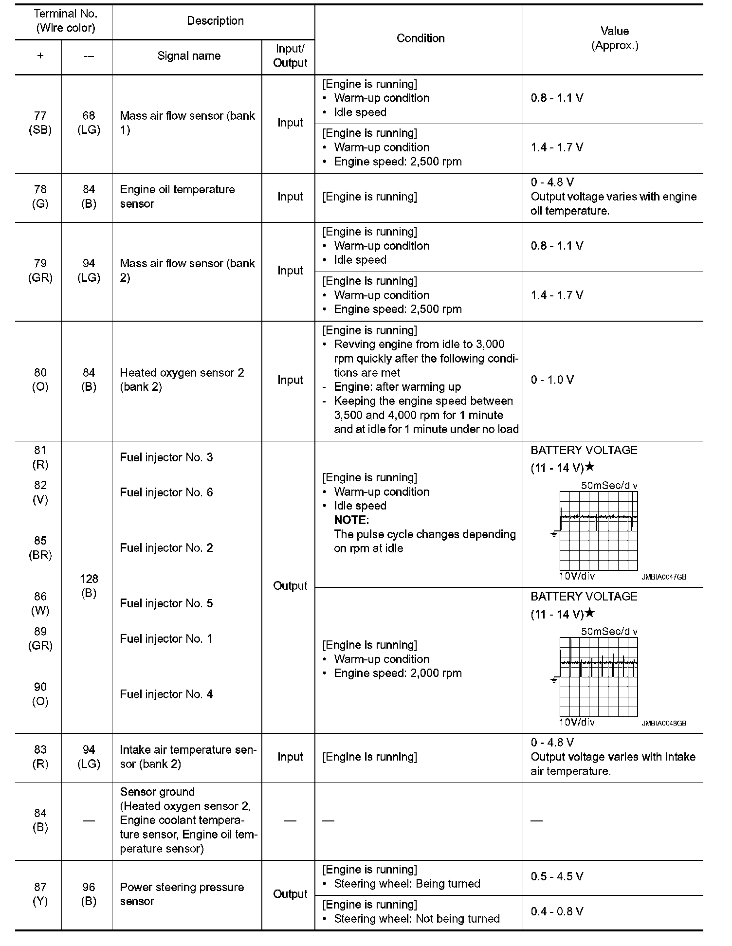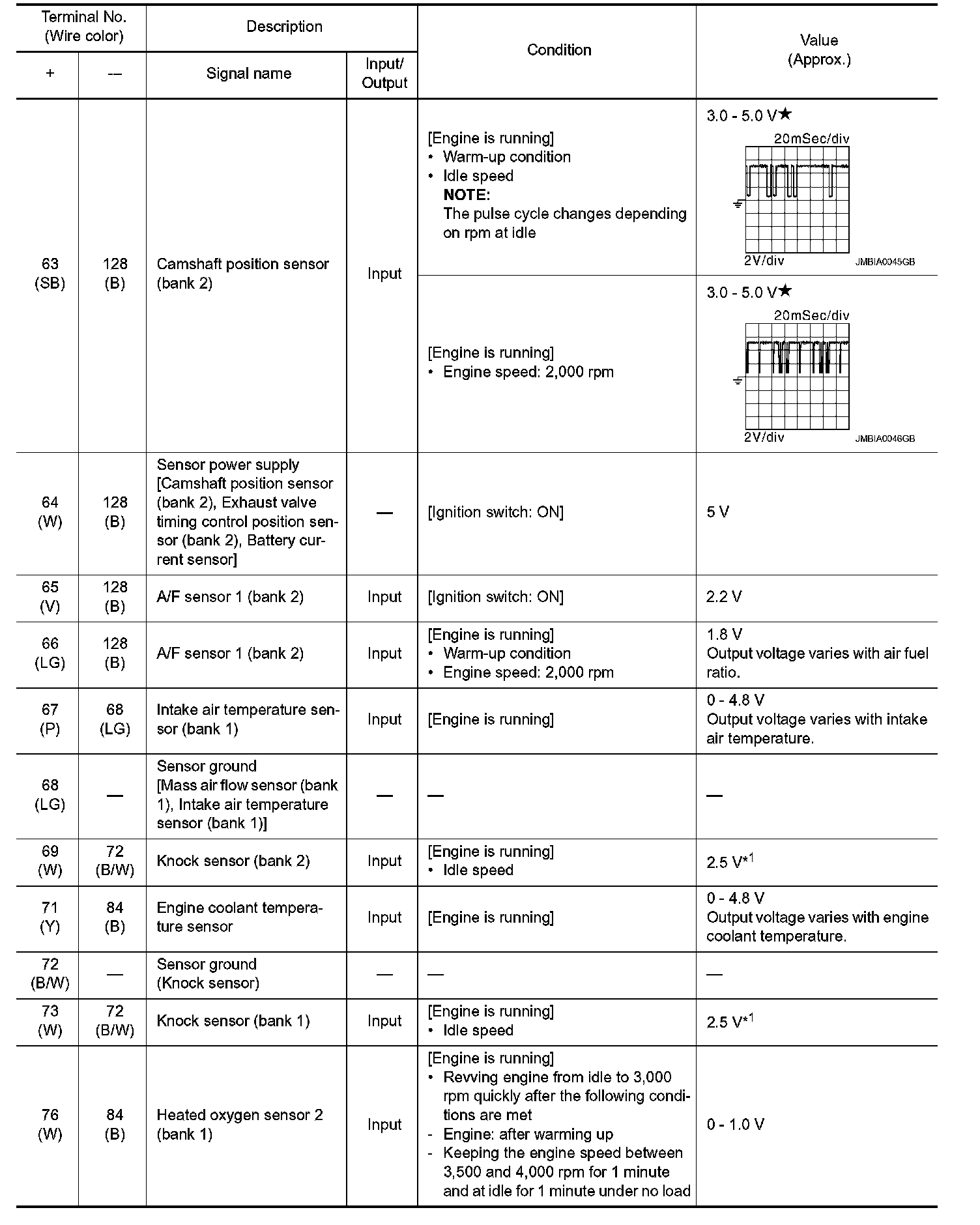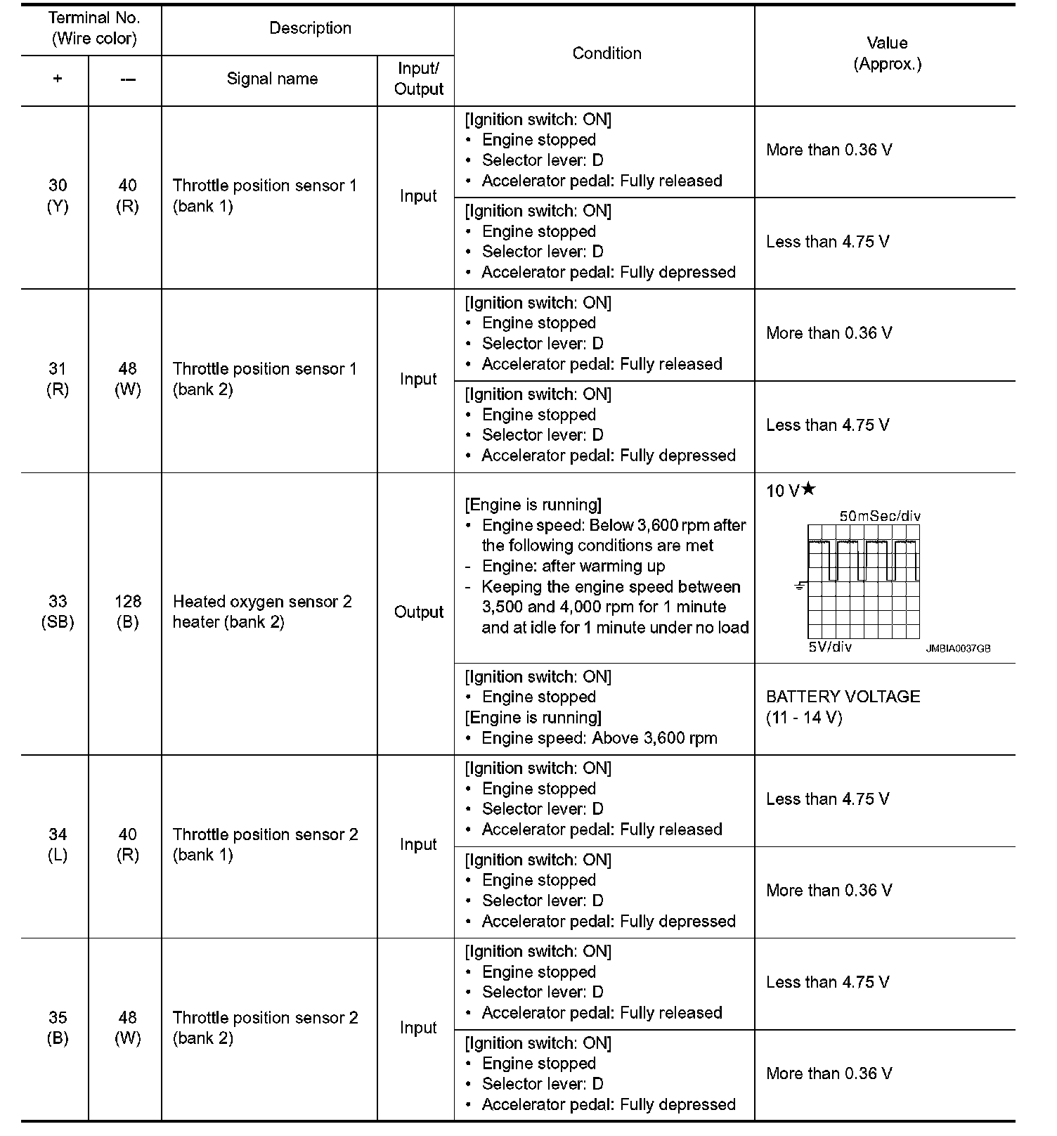 - Specification data are output/input values which are detected or supplied by the ECM at the connector.