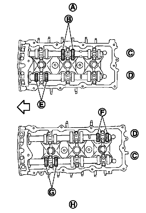 - By referring to the figure, measure the valve clearances at locations marked "�" as shown in the table below (locations indicated in the figure).