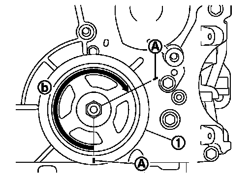 Mark a position 240 degrees (b) from a corner of the hexagonal part of crankshaft pulley mounting bolt as shown in the figure.